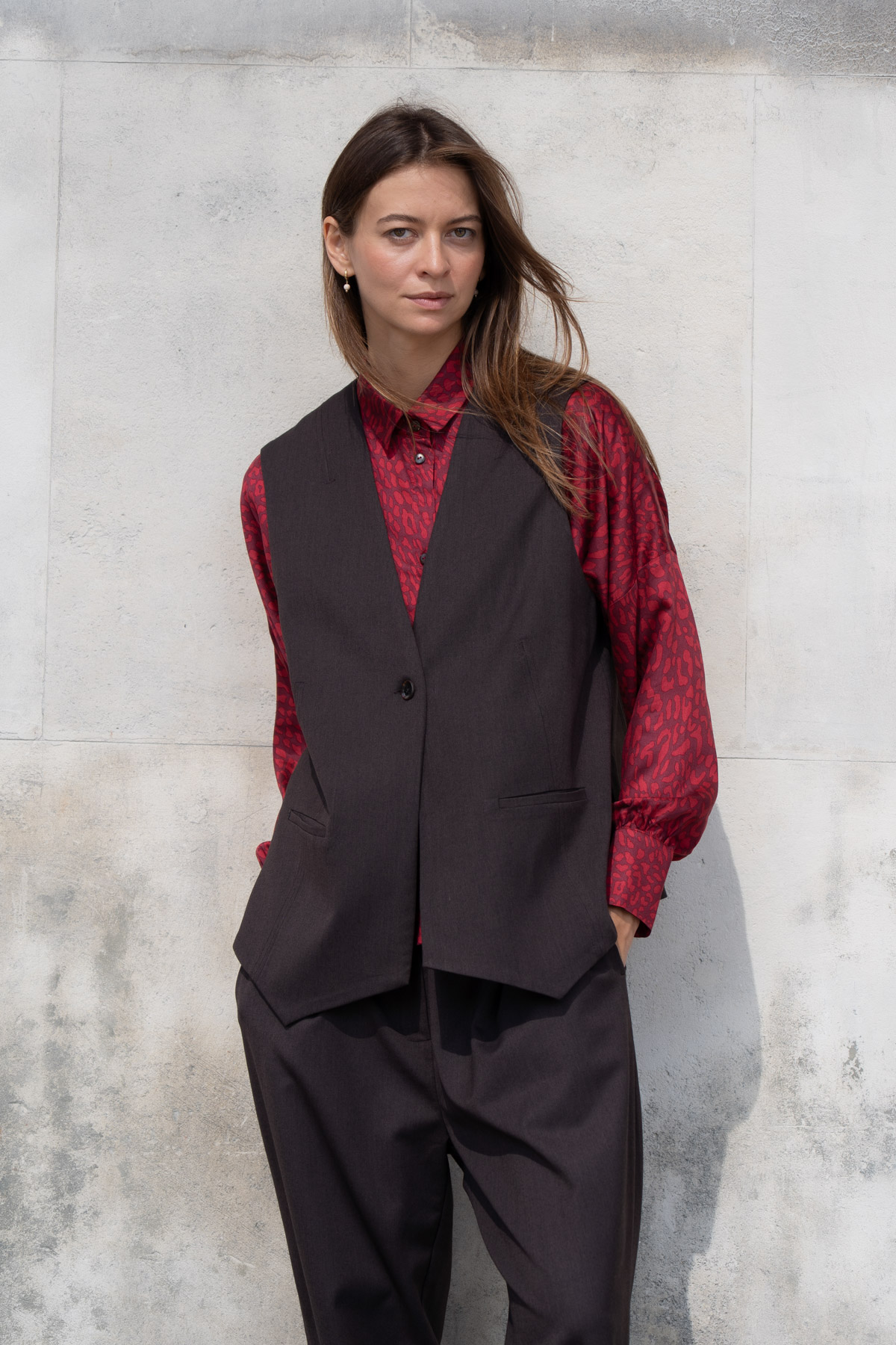 • Lekko oversizowa, luźna kamizelka z miękkiej, wysokiej jakości brązowej wełny